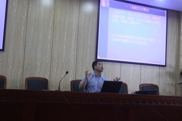 学术报告厅为作了题为“朝鲜半岛热点问题及思考”的学术讲座,讲座由刘建国副院长主持。历史学和汉语言文学学子们齐聚一堂认真听讲,出席听讲的还有球探体育