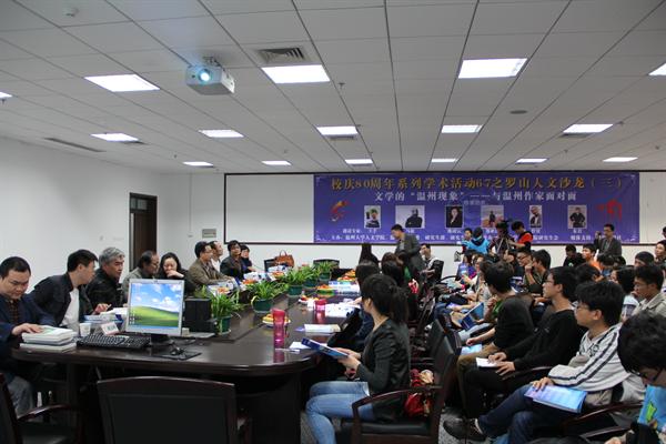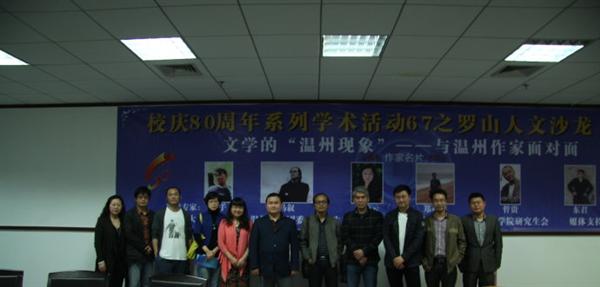 2013年5月8日下午2:00,校庆80周年系列活动之罗山人文沙龙(三)在温州大学育英图书馆B213隆重举行,其主题是“文学的‘温州现象’——与温州作家面对面”。此次活动由温州大学球探体育