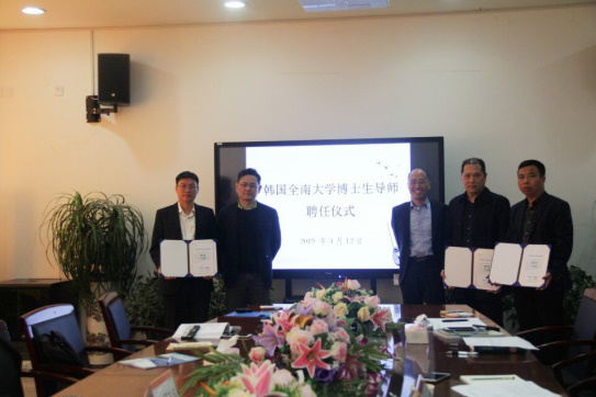 2019年4月12日上午10点,韩国全南大学李晟远教授和薛培煥教授在我校北校区人文楼213会议室召开了学术讲座,同时举行了对我校陈安金、李俊芳、邱志诚三位教授的博士生导师聘书授予仪式。本次讲座由我院郑春生副院长主持,郑晓丽教授担任翻译工作,球探体育 各个专业的同学们积极参与。