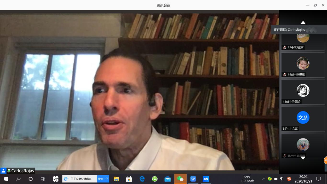 还有中文系、广告学的本科生踊跃提问,用英文与罗鹏教授做了互动,即使相隔异国,也阻挡不了同学们发言提问的热情,各专业的同学纷纷在留言板上留言。