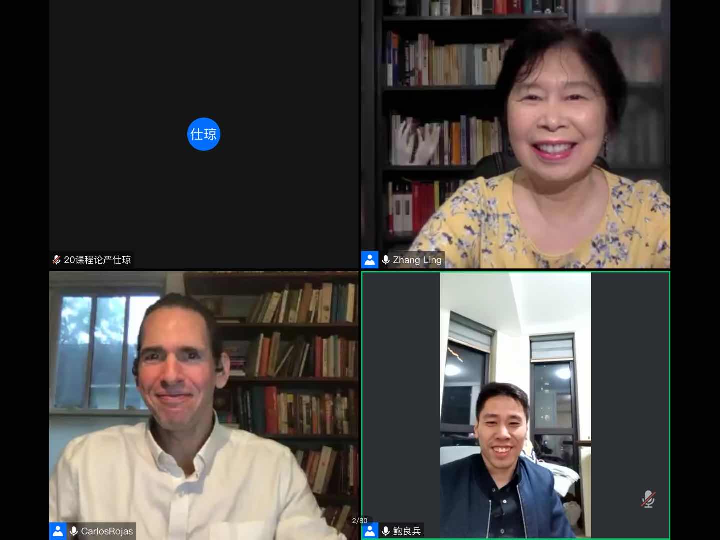 2020年10月21日晚20点15分,来自美国杜克大学的罗鹏教授受邀开展了一次云端会议,讲座由鲍良兵副教授主持,参与者有孙良好院长与张翎老师。