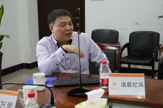 2020年11月15日19:00,瓯越学术讲座第38期《文史互动一一诸葛忆兵教授治学经验交流会》如期在球探体育 213会议室以座谈会的形式举行,本期讲座由人民大学中国人民大学国学院教授、博士生导师诸葛忆兵教授主讲,球探体育 杨万里教授主持,参与本次讲座有我校教师和研一研二古代文学与古典文献学等相关专业的研究生们。