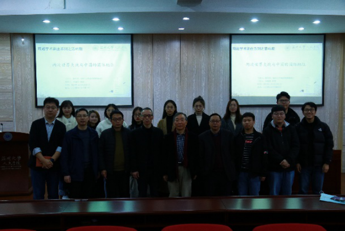 2020年12月24日下午,浙江大学求是特聘教授、浙江大学蒋介石与近代中国研究中心主任、陈香梅资料与研究中心主任陈红民教授受邀在球探体育 203学术报告厅作题为《两次世界大战与中国的国际地位》学术讲座。球探体育 刘建国等老师、部分历史研究生与本科生一起参与讲座。
