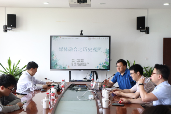2021年5月10日上午9时,国家哲学社会科学专家咨询委员会委员、国家“万人计划”哲学社会科学领军人才首批入选者、中央文宣系统文化名家暨“四个一批”人才工程首批入选者、新闻出版系统领军人才工程首批入选者、国家社科基金新闻传播学科评审组召集人、国务院学位委员会新闻传播学学科评议组原召集人、中国社科院新闻所原所长、中国社科院中特中心原主任、中央马工程首席专家、湖南师范大学新闻与传播学院院长尹韵公教授应邀在球探体育 人文楼213会议室作《媒介融合之历史观照》的学术讲座。讲座由院长孙良好教授主持,广告系黄良奇老师、夏雨禾老师、赵屹然老师以及新闻与传播专业研究生参加了听讲。