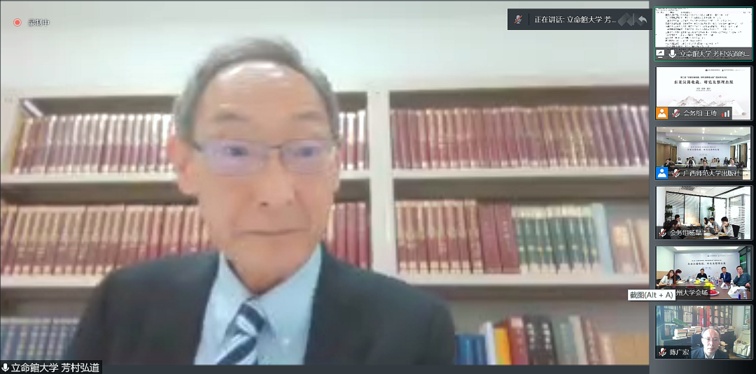 2022年5月21日至22日,由北京大学中国古文献研究中心、广西师范大学出版社集团有限公司主办,球探体育 协办的第二届“古籍文献收藏、研究与整理出版”国际学术论坛之“东亚汉籍收藏、研究与整理出版”研讨会,以线上、线下相结合的方式召开,在北京、桂林、温州三地设立分会场。会议开幕式由广西师范大学出版社集团有限公司总编辑汤文辉编审主持,全国古籍整理出版规划领导小组副组长、全国高校古委会名誉主任、北京大学中国古文献研究中心安平秋教授,广西师范大学出版社集团有限公司董事长黄轩庄教授,温州大学球探体育 副院长陈源源教授先后致辞。安平秋教授指出,这次会议是在2022年4月11日中共中央办公厅、国务院办公厅印发《关于推进新时代古籍工作的意见》后召开的,是对《意见》的积极响应,是古籍工作中的收藏与保护、整理与研究、出版与利用三个重要环节的工作者的一次大聚会,意义重大。