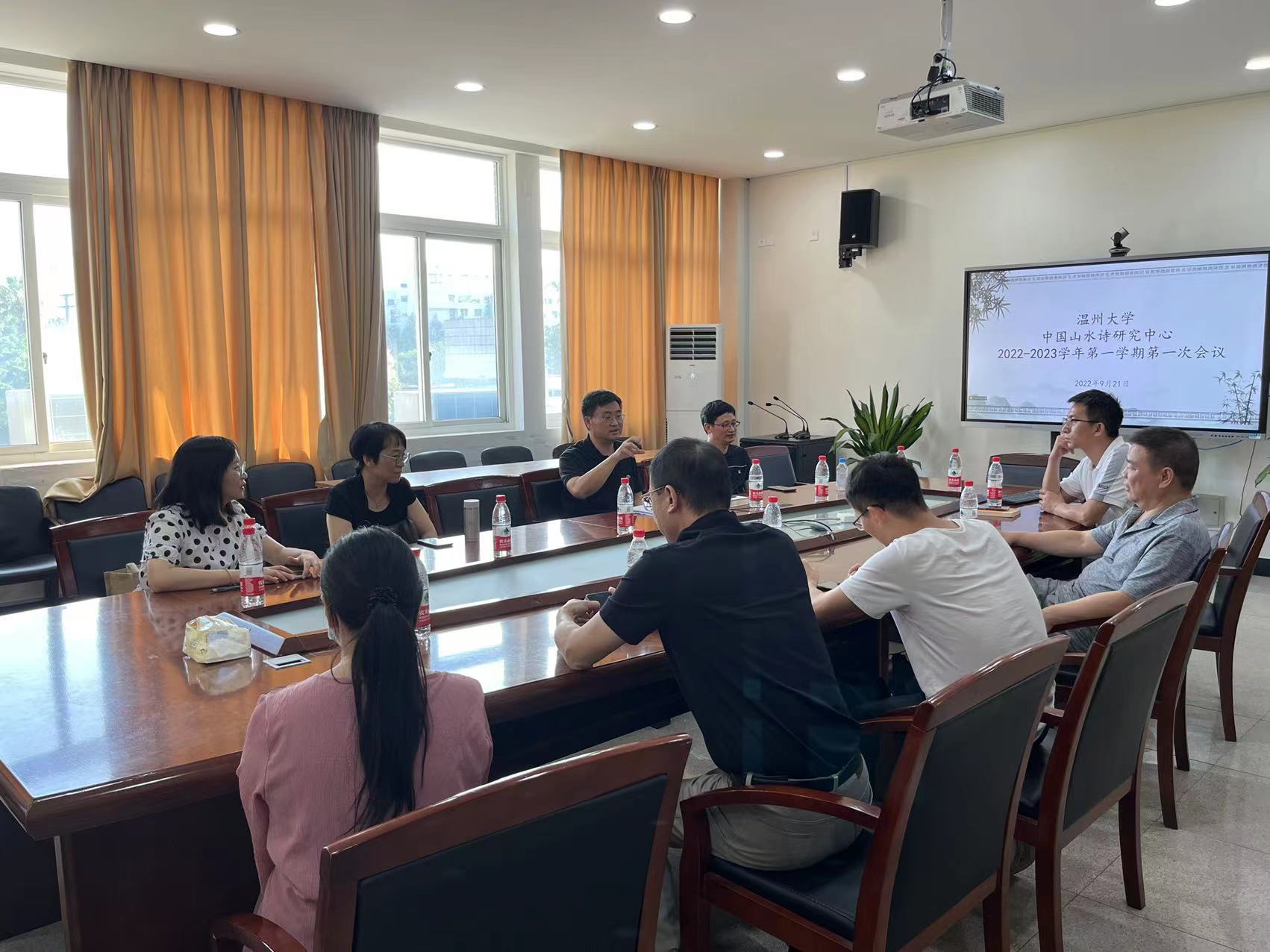 日前,球探体育 孙良好教授主持的“瓯江山水诗路研究”项目获批浙江省文化研究工程重大项目。9月21日下午,中国山水诗研究中心本学年第一次会议于球探体育 213会议室召开。孙良好教授、诸葛忆兵教授、陈瑞赞研究员、杨万里教授、金丹霞教授、洪之渊副教授、陈伟娜博士、苏碧铨博士、王朋飞博士等参加会议。