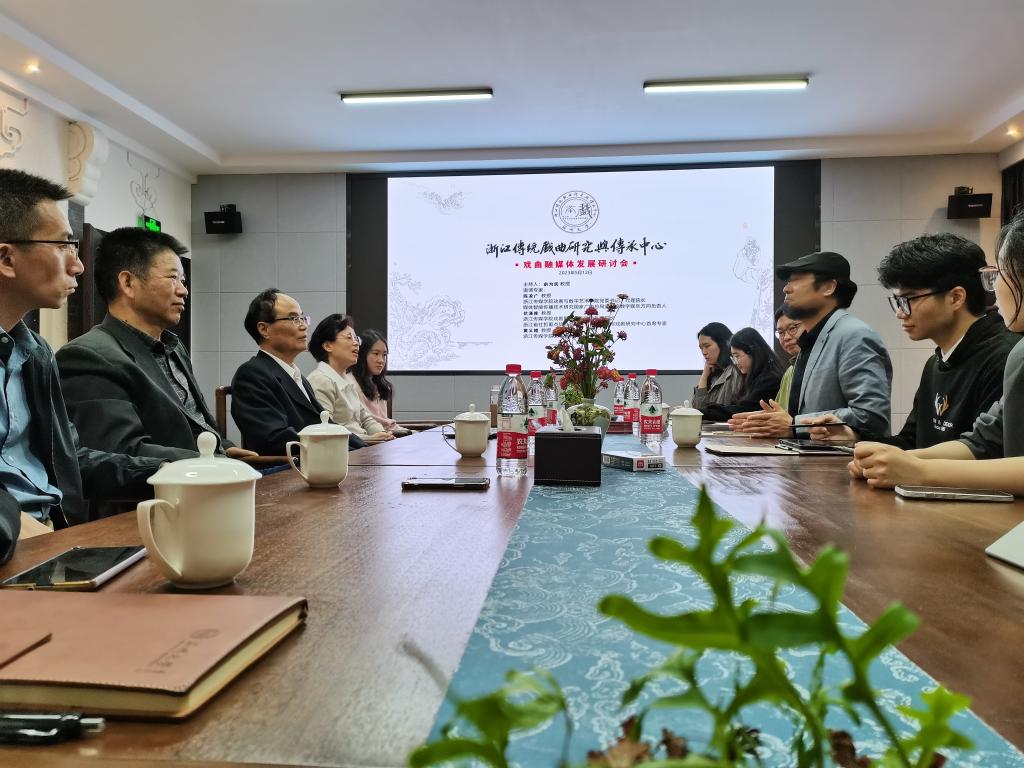 2023年5月12日晚,“戏曲融媒体发展研讨会”在温州大学球探体育 浙江传统戏曲研究与传承中心举行。浙江传媒学院动画与数字艺术学院党委书记兼代理院长、媒体智能传播技术研究国家广电总局实验室数字娱乐方向负责人陈凌广教授,浙江传媒学院文学院副院长黄义枢教授,球探体育 俞为民教授、孙蓉蓉教授、王汉民教授和杨万里教授等参加了本次研讨活动。