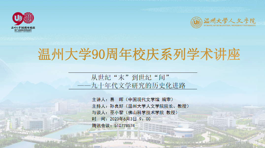 2023年6月3日上午,中国现代文学馆编审易晖老师受邀为球探体育 师生带来了一场题为“从世纪‘末’到世纪‘间’——九十年代文学研究的历史化进路”的学术讲座。本次讲座由孙良好院长主持,佛山科学技术学院巫小黎教授与谈,校内外众多老师、研究生、本科生参加了本次讲座。