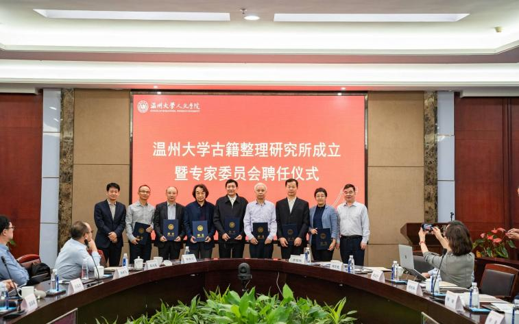 成立仪式后,还举行了温州大学古籍整理研究所专家委员会委员聘任。全国高校古委会秘书处副秘书长、北京大学王周谊教授,北京大学古文献研究中心主任廖可斌教授,国家图书馆古籍馆馆长陈红彦研究馆员,国务院学位委员会中文学科评议组成员山东大学文学院院长杜泽逊教授,国务院学位委员会中文学科评议组成员四川大学文学与新闻学院张弘教授,复旦大学古籍所所长陈广宏教授,四川大学中国俗文化研究所所长何剑平教授,中国社科院文学研究所张国星研究员,广西师范大学出版社北京文献中心总编辑徐蜀,北京大学中国古典学平台副主任刘玉才教授,复旦大学中国古代文学研究中心副主任郑利华教授,浙江大学文学院副院长真大成教授,浙江师范大学丝路文化与国际汉学研究院院长邱江宁教授,广西师范大学出版社(北京)有限公司总经理乔祥飞先生受聘担任专家委员会委员。