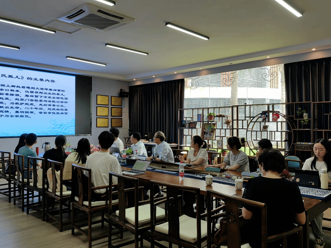 讲座的第一部分围绕“戏曲经典的形成”展开。伏教授首先阐释了“经典”和“戏曲经典”的概念,并列举了部分经典戏曲剧目。接着,他深入浅出地论述了文学经典的意义和形成原因,并以图片的形式展示了《西厢记》《南西厢》《牡丹亭》等经典作品的图像,令大家直观地感受到经典作品的艺术魅力。随后,伏教授以《赵氏孤儿》为例,详细讲解了这部经典的形成过程。他从《左传》《史记》等典籍中梳理了“赵氏孤儿”故事的源流,并对比分析了不同版本的情节差异,最终回归到元杂剧《赵氏孤儿》本身。在讲解过程中,伏教授还展示了《元刊杂剧三十种》《元曲选》等刊本中《赵氏孤儿》的风采。