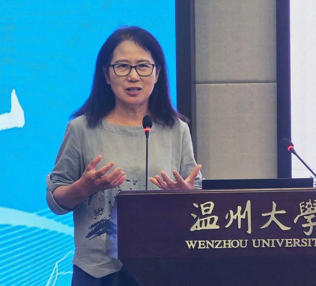 美国华人作家、海外文学评论家陈瑞琳作了题为“世界华文文学的新格局”的演讲。陈瑞琳依次介绍了北美、东南亚、欧洲、澳大利亚的代表华人作家及其新作,强调了海外华文文学的重要性,表达她力图推动华文文学走向世界的愿景。她指出了海外华人创作的新风向——双语写作,并特举例温大驻校作家张翎的新作《归海》予以说明。张翎先后用英汉双语写作《归海》,作为“战争的孩子三部曲”之二的《归海》展现了其对人性的拷问和救赎,而用双语写作也表明以张翎为代表的华人作家进入了创作的新阶段。陈瑞琳还对世界华文文学的区域特点作了大体勾勒。