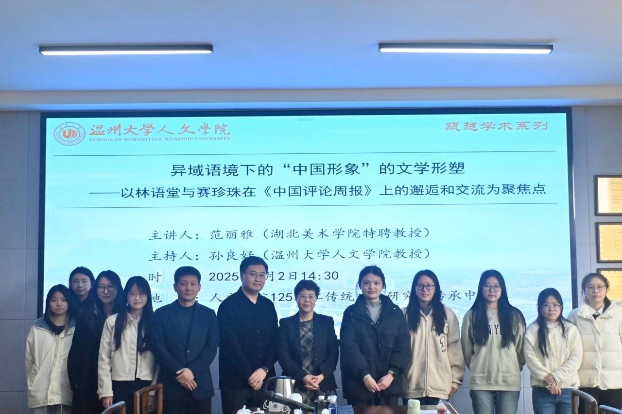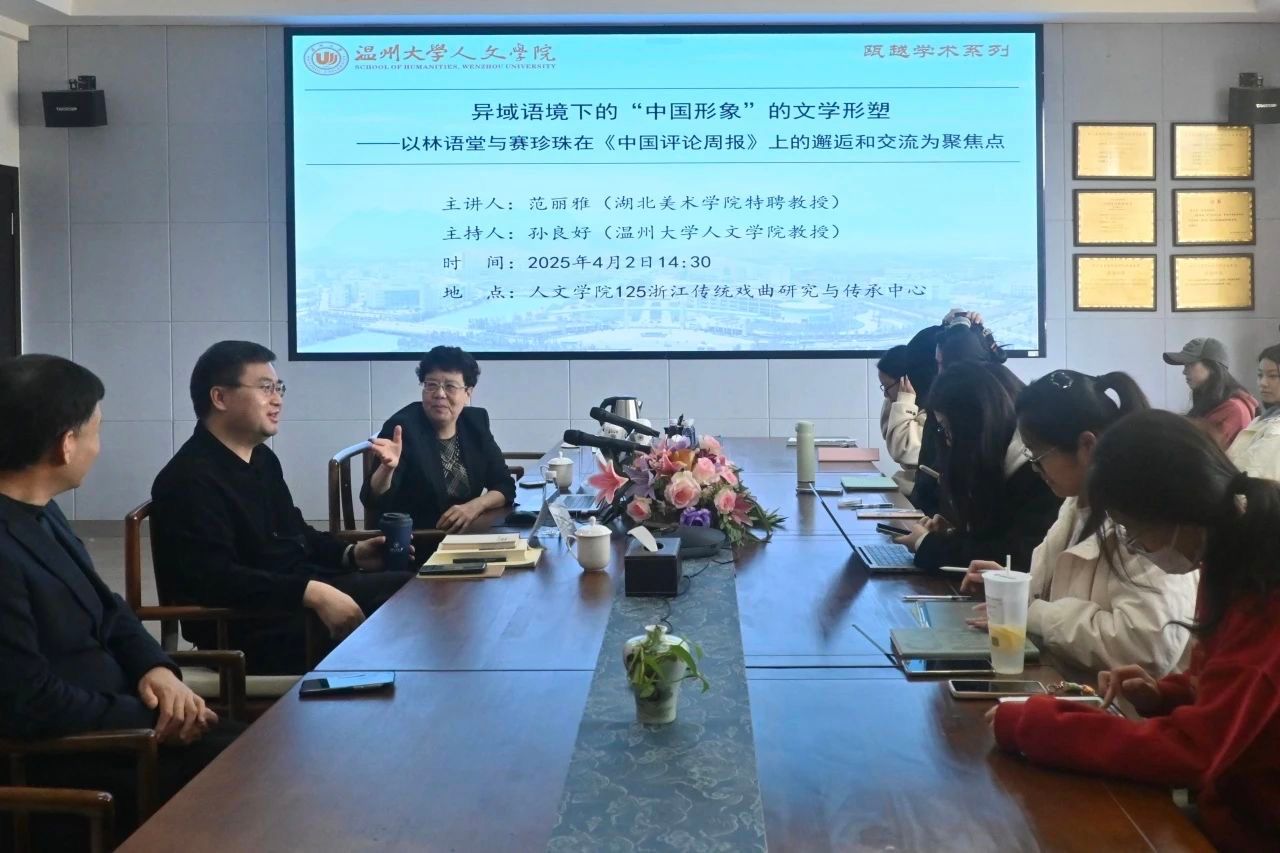 2025年4月2日,球探体育 特邀现任湖北美术学院特聘教授范丽雅,在浙江传统戏曲研究与传承中心开展“异域语境下的‘中国形象’的文学形塑——以林语堂与赛珍珠在《中国评论周报》上的邂逅和交流为聚焦点”专题讲座。讲座由球探体育 院长、图书馆馆长孙良好教授主持,参与讲座的听众有侯荣川教授以及在校硕士研究生同学。现场师生积极参与学习与讨论,学术氛围浓厚。
