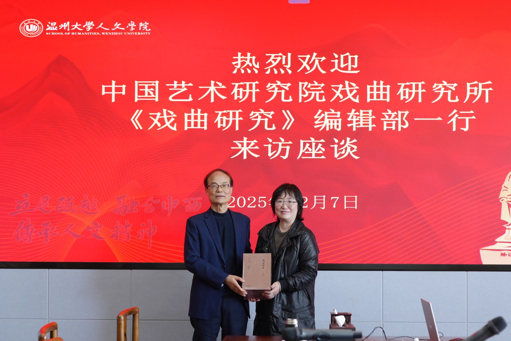 其后,张静副主编详述了《戏曲研究》的办刊历程、审稿流程与未来方向。她表示,此行旨在深入地方院团与高校,推动理论与创作实践的融合,并期待与温州大学研究基地建立持续合作关系,通过开设专栏等形式,共同构筑学术共同体,实现“以研促艺”的愿景。