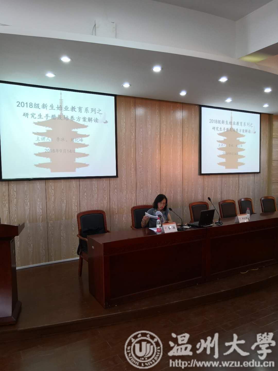 为了加强对研究生的培养和管理,2018年9月14日下午,学生科副科长刘纪峰及研究生教学秘书李冰老师于人文楼203学术报告厅开展了2018级研究生手册和培养方案解读的讲座,2018级全体研究生参加了此次讲座。
