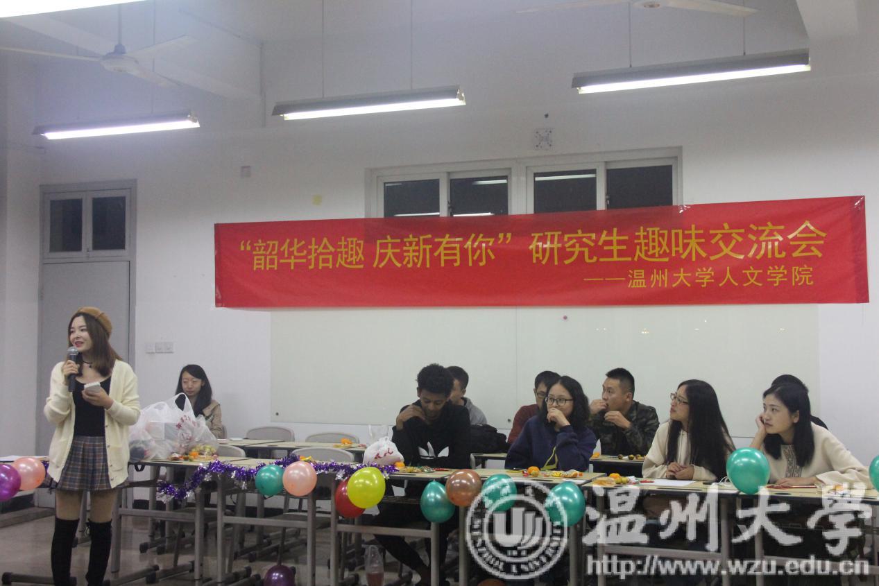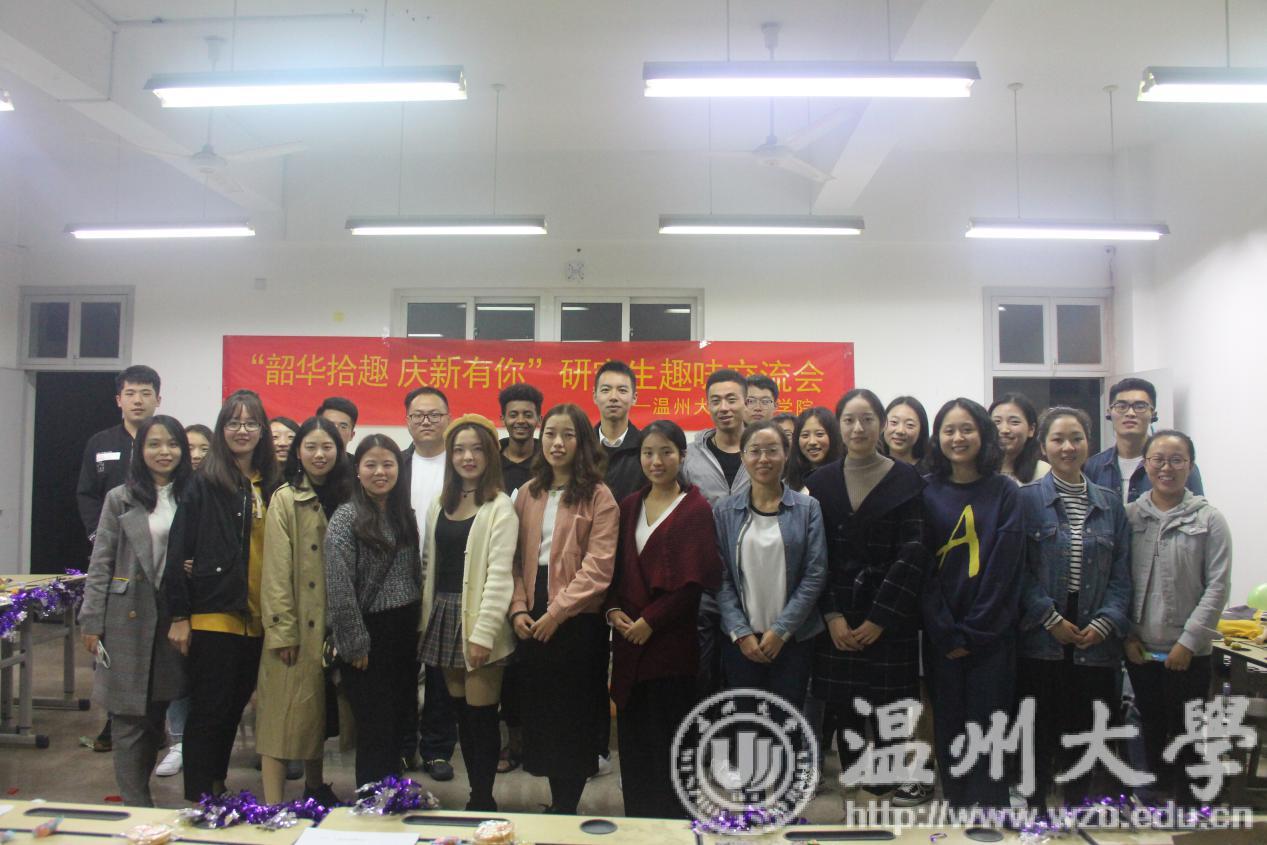 2018年11月2日晚六点半,球探体育 在人文楼411教室成功举办了“韶华拾趣,庆新有你”为主题的研究生趣味交流会,来自多个学院的三十余位学生参与其中。
