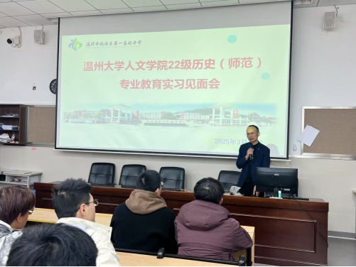 见面会由榕园学校赵银林老师主持。会上,榕园学校蒋小华副校长率先致欢迎辞并表示学校始终重视与大学院系的深度合作,强调历史教育是培根铸魂的重要载体,期待实习生们“以历史之镜观照现实”,在实践中锤炼教学技能,同时为榕园学校注入青年视角的创新活力。随后教育指导老师代表陈如意、实习生代表陈益漩依次进行发言。最后温州大学球探体育 副院长陈鸿超在致辞中感谢榕园学校多年来的支持,指出教育实习是师范生培养的“关键转化环节”,期待本次实习成为校地协同育人的新范本。