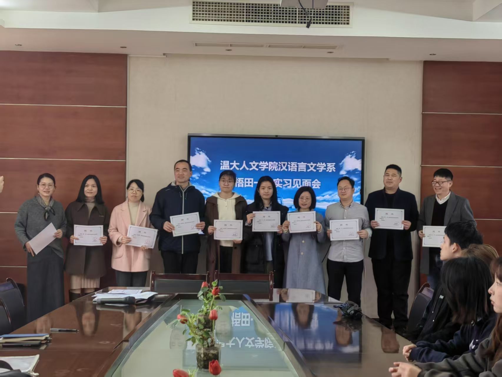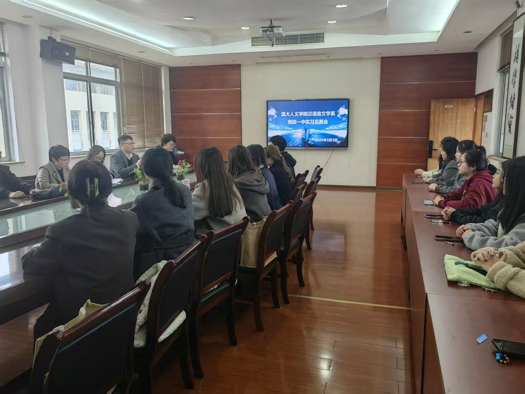 “至若春和景明”,“明”于梧田。为帮助实习生们全面了解学校的各方面情况,更好、更快地适应实习工作及开展各项活动,助力身份的转变,2025年3月3日,温州市瓯海区梧田第一中学在诚德楼409会议室为温州大学球探体育 22级汉语言文学(师范)专业的实习生们准备了一场教育实习见面会。梧田第一中学张强副校长、学科导师和班主任导师,温州大学球探体育 陈源源副院长、高校指导教师罗进近、郭垚以及17名实习学生参加本次见面会。会议由梧田一中张乐老师主持。