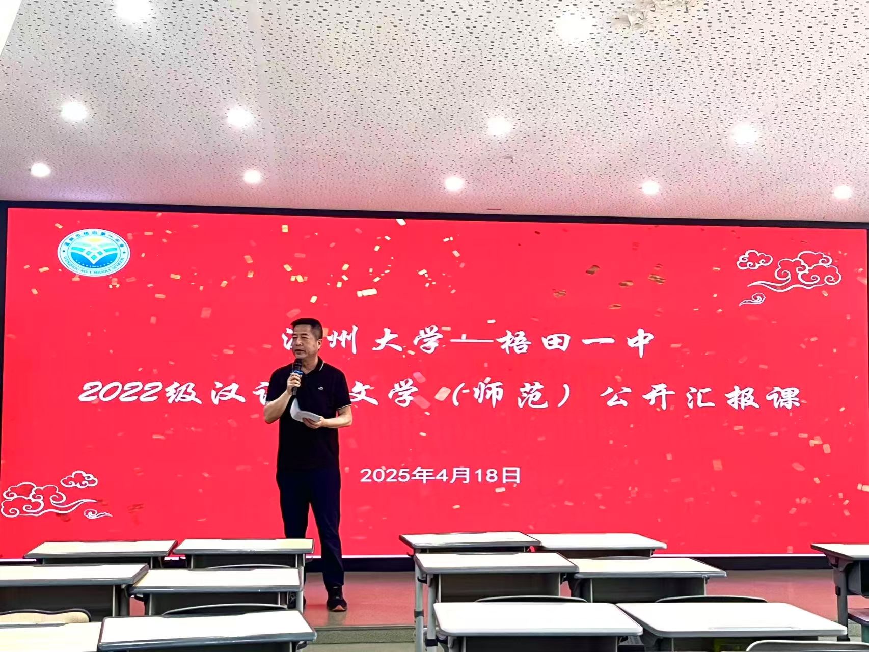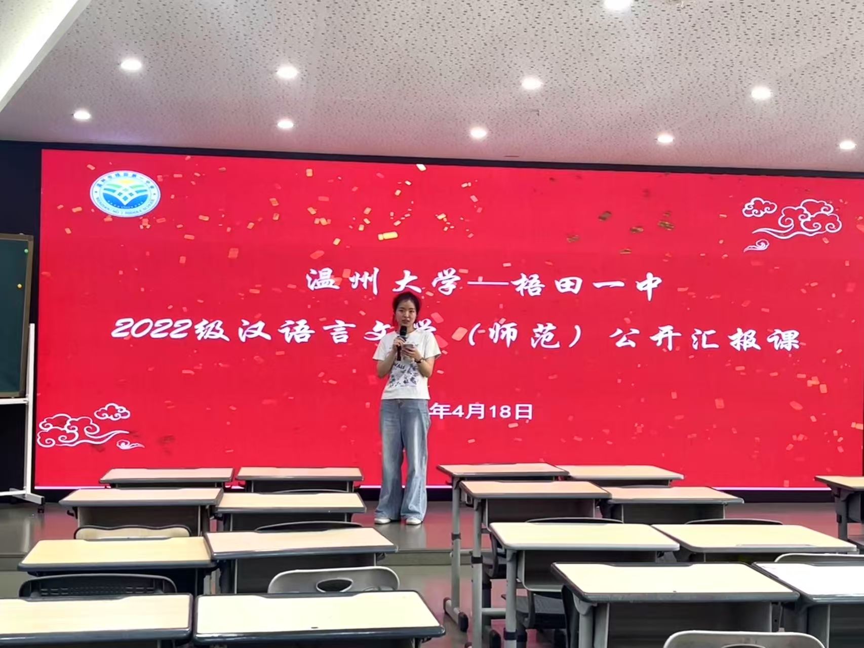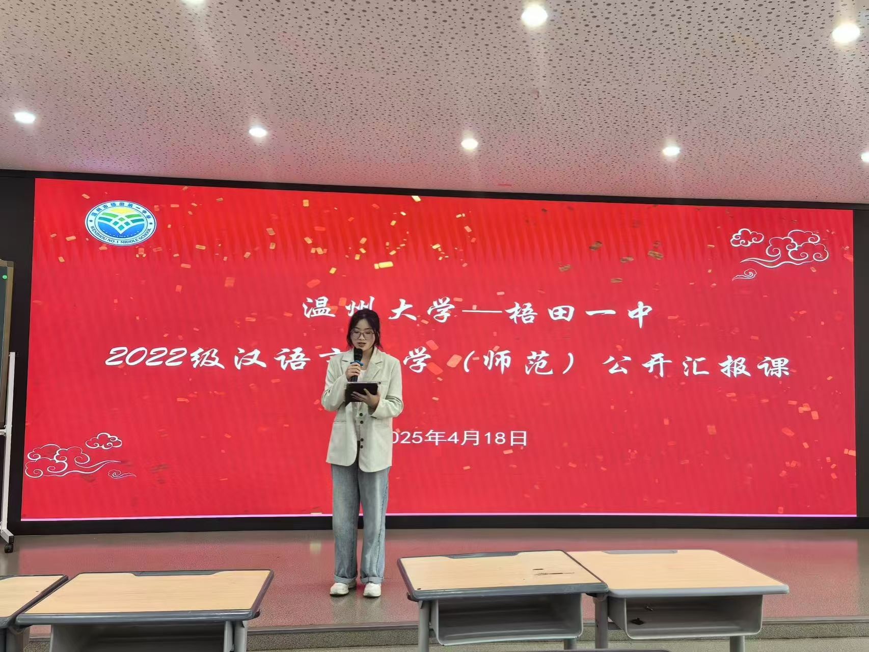 暮春之韵正悠扬,实习之旅亦收章。4月18日下午,温州大学选派的十七位实习生,于梧田一中顺利完成了为期两个月的实习任务,为这段实习征程画上了圆满的句号。值此实习生涯收官之际,实习生们经过精心筹备,推选代表开展了一场精彩纷呈的展示活动,全面汇报了两个月来在梧田一中实践所取得的丰硕成果。