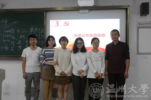 本次大会主要分为三个议程:首先是发展对象候选人做3分钟竞选讲演;其次是享有投票权的本支部正式党员进行无记名投票;最后由组织委员赵飞跃和宣传委员卓阿莹负责唱票统计结果。本着公开公正公平的竞选原则,大会最后确定王宗一、陈芳君、朱诗娇、徐云江、郑连乔、张杭6名同志为发展对象。