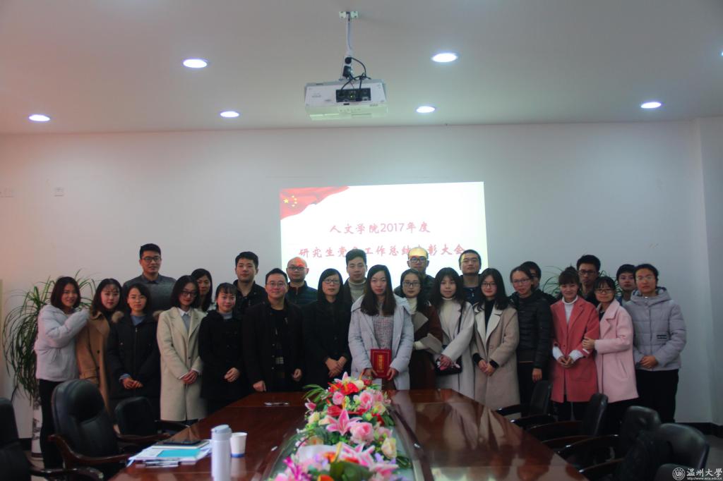 1月19日下午,球探体育 2017年度研究生党务工作总结表彰大会在人文楼213会议室举行。参加本次大会的有学院党委书记吴静、党委副书记朱启鑫、学生科副科长刘纪峰以及部分研究生党员代表和群众代表。