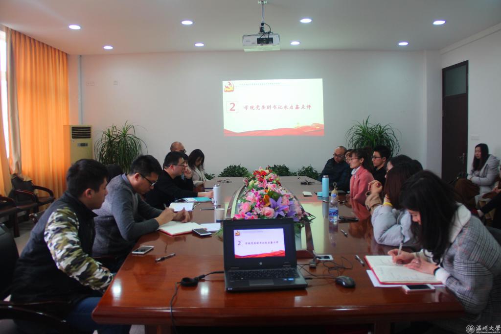 会上各学生党支部和“星火·薪传”党员志愿服务中心代表分别就2017年度党建活动开展情况和下阶段党建工作规划进行简要汇报。学院党委副书记朱启鑫强调了党建工作的重要性,在对各党支部和党员服务中心过去一年表现作出高度评价的同时,针对存在的问题提出以下四点要求:一是深化服务意识,坚持理论与实践相结合;二是提高服务能力,结合自身特色开展活动;三是扩大服务范围,开展活动要“走出去”;四是加强党支部与党员志愿服务中心的合作,提高融合度和参与度。