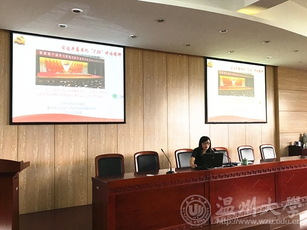 召开政治理论学习会,学习传达习近平总书记7月26日在省部级主要领导干部专题研讨班上重要讲话精神。党总支书记吴静作专题辅导报告,70余位教职员工参加学习。