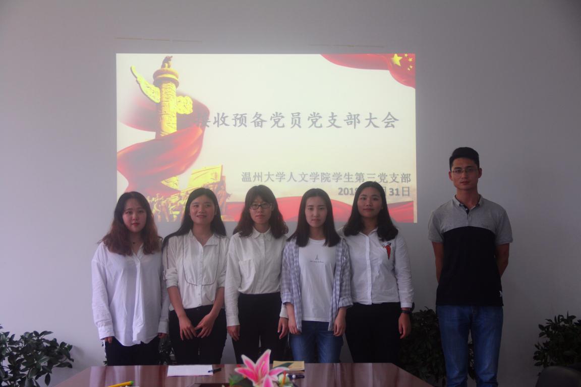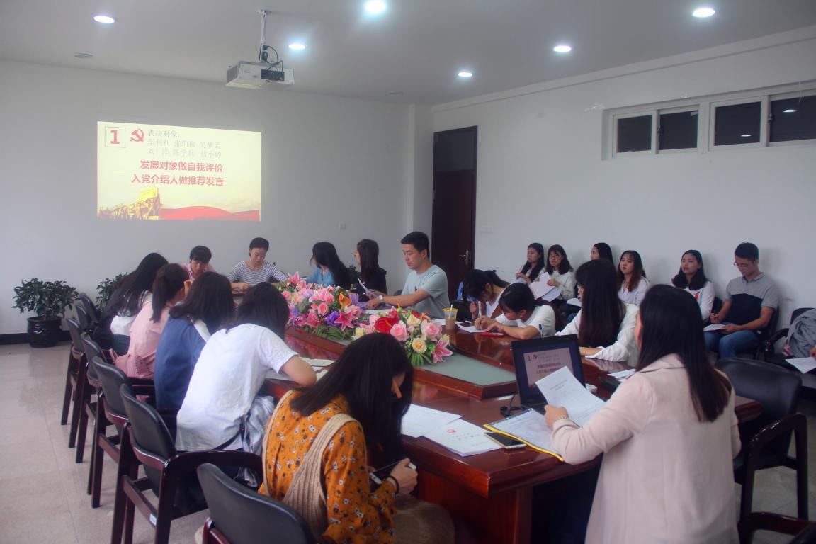 大会分为三个流程:一是由车利利、张珣珣、吴梦柔、刘洋、陈学兵和敖小婷六位发展对象分别作自我评价,并由其入党介绍人作介绍发言;二是党支部正式党员无记名投票表决;三是入党宣誓环节。