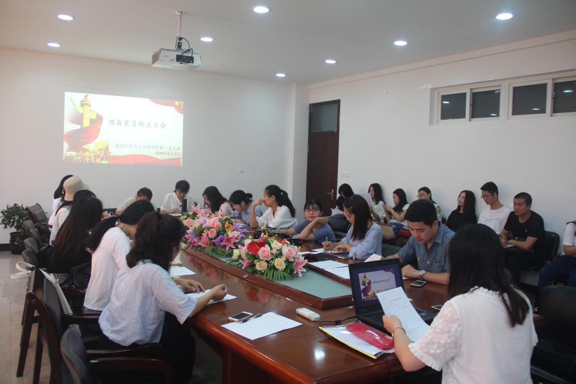 2018年6月7日上午,球探体育 学生第三党支部于北校人文楼213会议室召开本学期预备党员转正大会,会议由学生第三党支部书记徐珍主持。