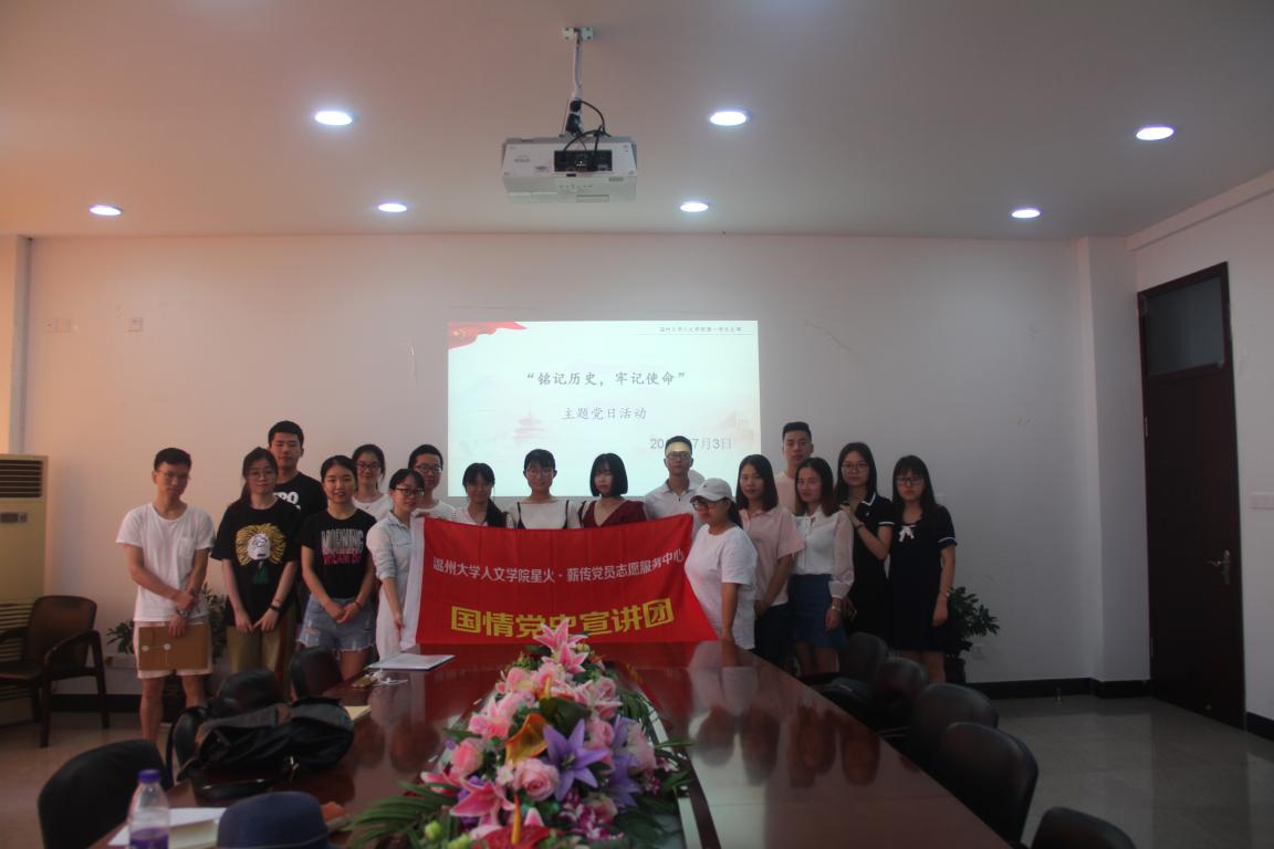 7月3日上午10点,球探体育 学生第一党支部携手国情党史宣讲团于人文楼213会议室开展“铭记历史,牢记使命”主题党日活动,庆祝中国共产党成立97周年。本次活动由学生第一党支部书记李林军主持,国情党史宣讲团负责人赵飞跃同志宣讲,支部全体成员参与。
