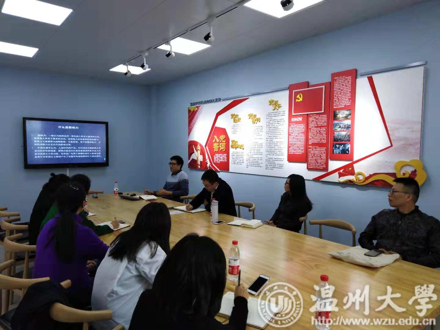 “今天比昨天做得更好,明天又比今天做得好,每一天都付出真挚的努力、不懈的工作、扎实的行动,在这样的过程中就体现了人生的目的和价值。”2018年11月23日下午,在党员之家,球探体育 党委书记吴静同志给教工第九支部全体党员上了一堂生动的党课,同时也拉开了“与书交友,创学习型党组织”读书活动的序幕。