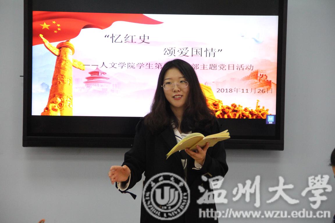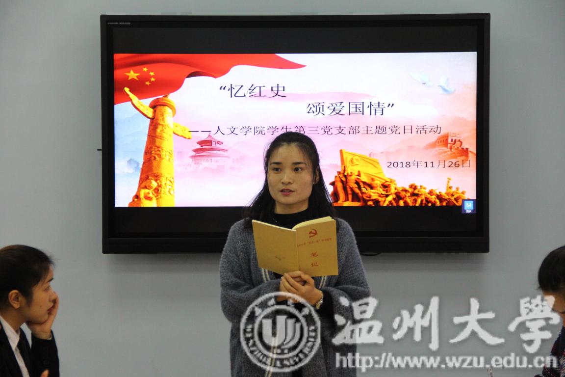 11月26日下午,球探体育 学生第三党支部在外语楼党员之家221会议室成功召开了“忆红色革命史,颂爱国主义情”主题党日活动。本次党日活动由支部书记徐珍主持,学生第三党支部全体党员参加。