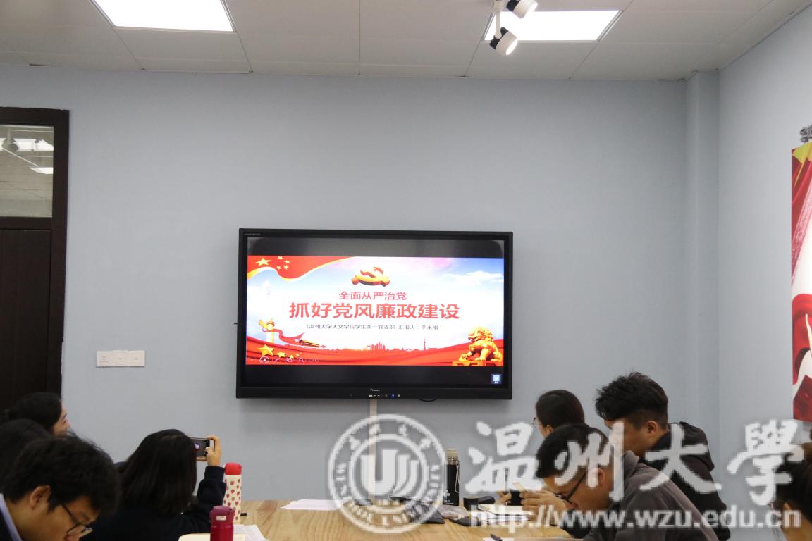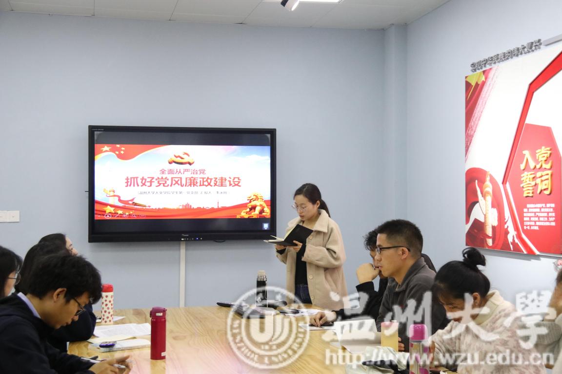 2018年12月23日下午3点半,球探体育 学生第一党支部和第二党支部携手“星火·薪传”党员志愿服务中心之国情党史宣讲团,于北校区外语楼221党员之家会议室举办了“全面从严治党,抓好党风廉政建设”主题党日活动。活动由球探体育 学生第二党支部书记陈赛君主持,学生第一党支部部分党员、第二党支部全体党员和国情党史宣讲团成员参加了本次活动。