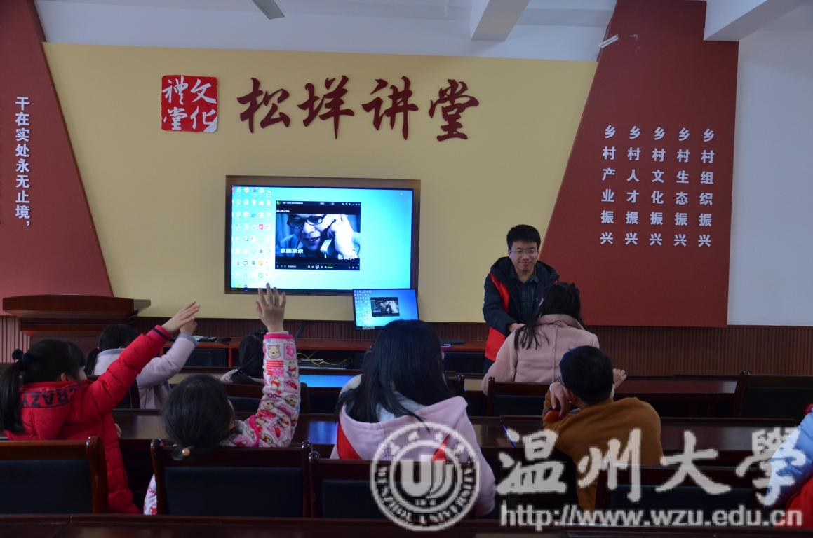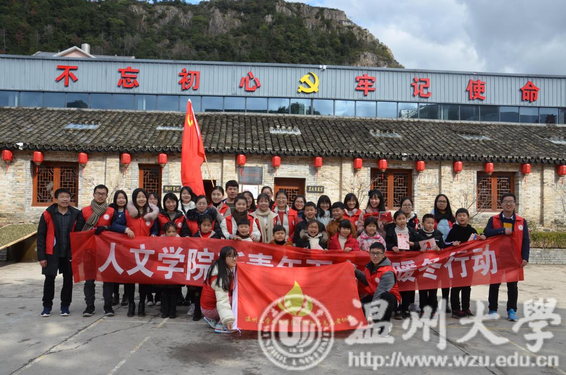 2019年1月6日,我院研究生党支部、“星火·薪传”党员志愿服务中心以及思源青年志愿者协会合作,组成志愿者团队,赴乐清市雁荡镇松垟文化礼堂开展了以“汇聚爱心,温暖童心”为主题的新青年下乡活动。