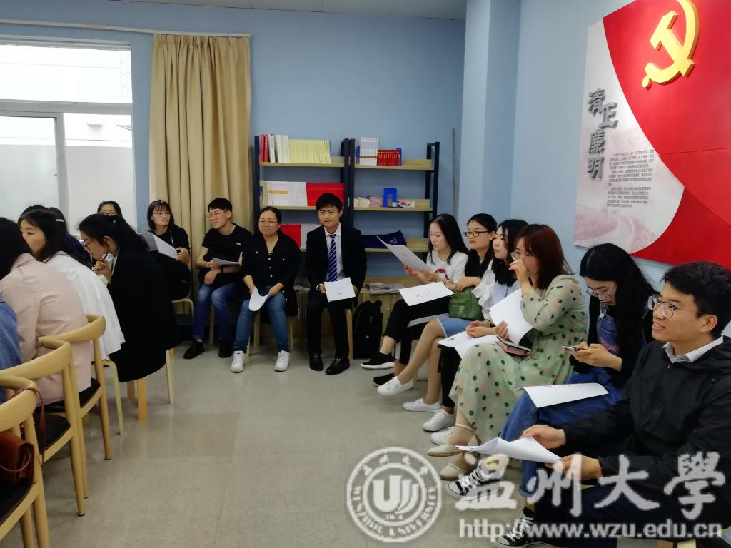 2019年5月5日晚,球探体育 学生第一党支部于北校外语楼党员之家221会议室讨论了关于接收曹清清等10位同志为中共预备党员的党支部大会。本次会议由支部书记李林军主持。