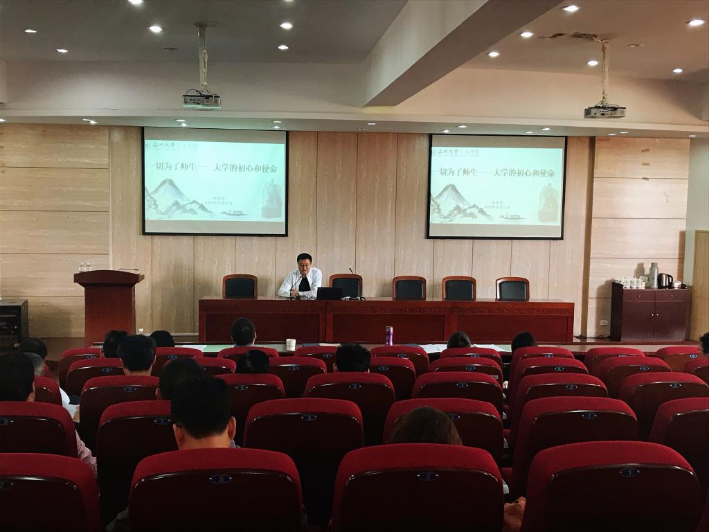 孙院长从大学的初心、理想的大学、大学的使命以及球探体育 的担当四部分阐述了对大学初心和使命的理解。孙院长认为,大学的宗旨在于彰显人本有的光明德性。他对在座教师提出了如下三点建议:第一,始终把一切为了学生作为出发点和落脚点,教育学生、服务学生、关心学生。第二,重视纯粹科学和人文科学的作用,平衡好“谋食”和“谋道”之间的关系。第三,认识你自己,聚焦当前学校三大目标,努力提升自身能力。