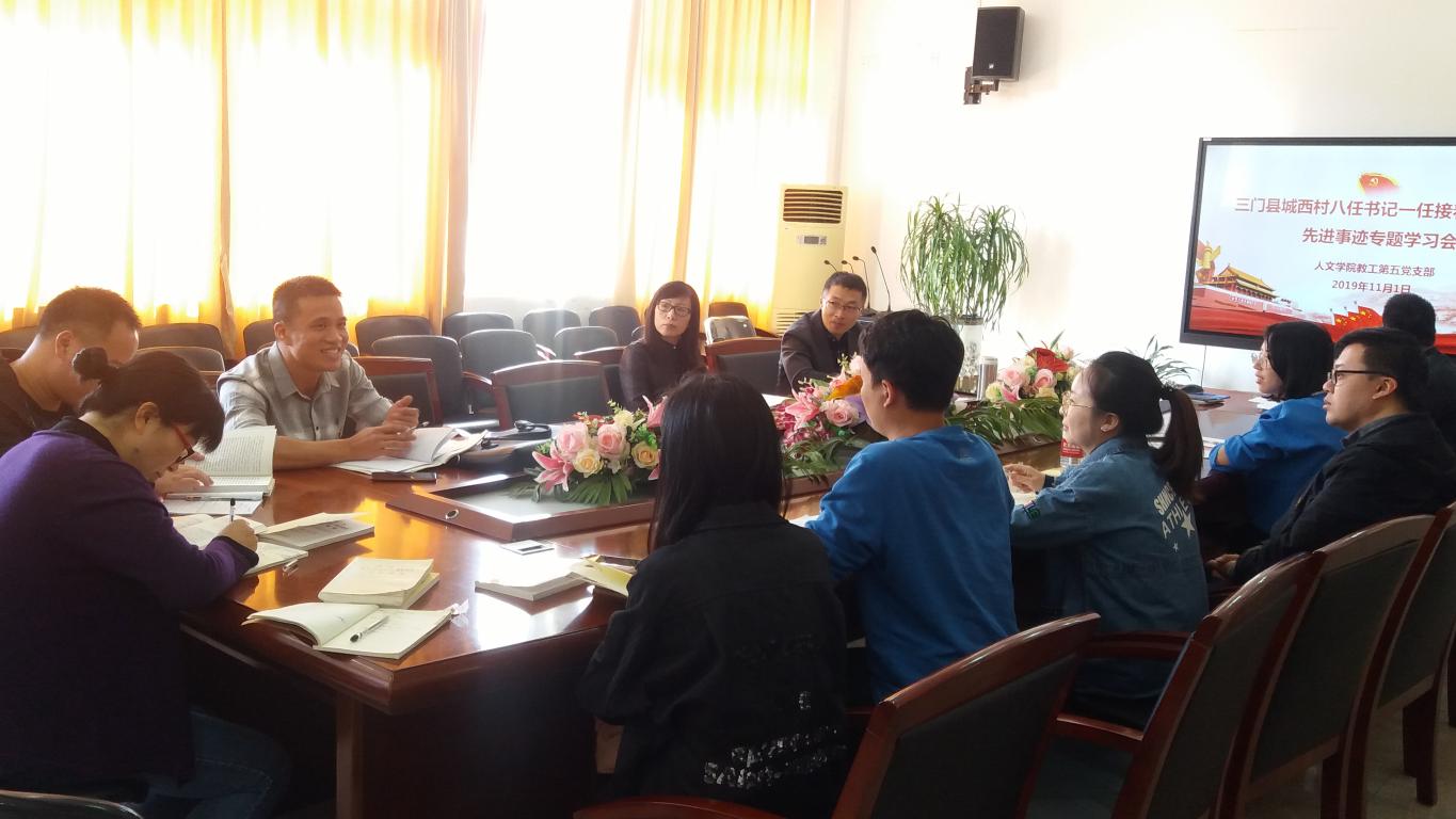 11月1日上午,球探体育 教工第五党支部在北校人文楼213会议室开展“三门县城西村八任书记一任接着一任干”的先进事迹专题学习会。活动由党支部书记魏一主持,支部全体成员参加。