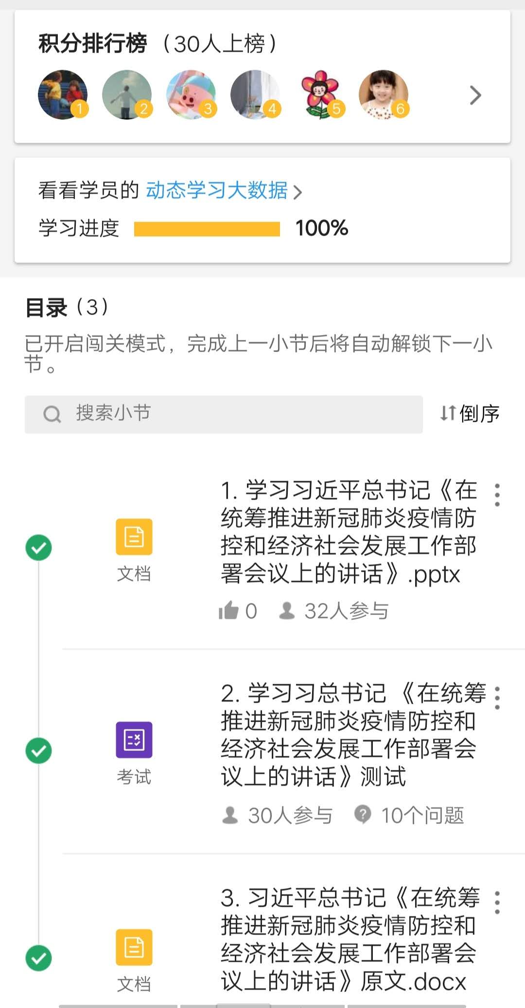 球探体育 各学生党支部组织党员在UMU平台上学习了习近平总书记《在统筹推进新冠肺炎疫情防控和经济社会发展工作部署会议上的讲话》,之后或采取测试的方式做到“原原本本学讲话”;或就相关话题展开讨论,做到“扎扎实实悟精神”。针对“如何在打赢疫情防控战中发挥模范作用”这一问题,大家围绕加强学风建设、强化学业管理、做好疫情防控等方面提出了许多意见,如主动承担学生党员的责任,以身作则,做好自身防控措施并尽可能将更多的知识普及给身边人等。