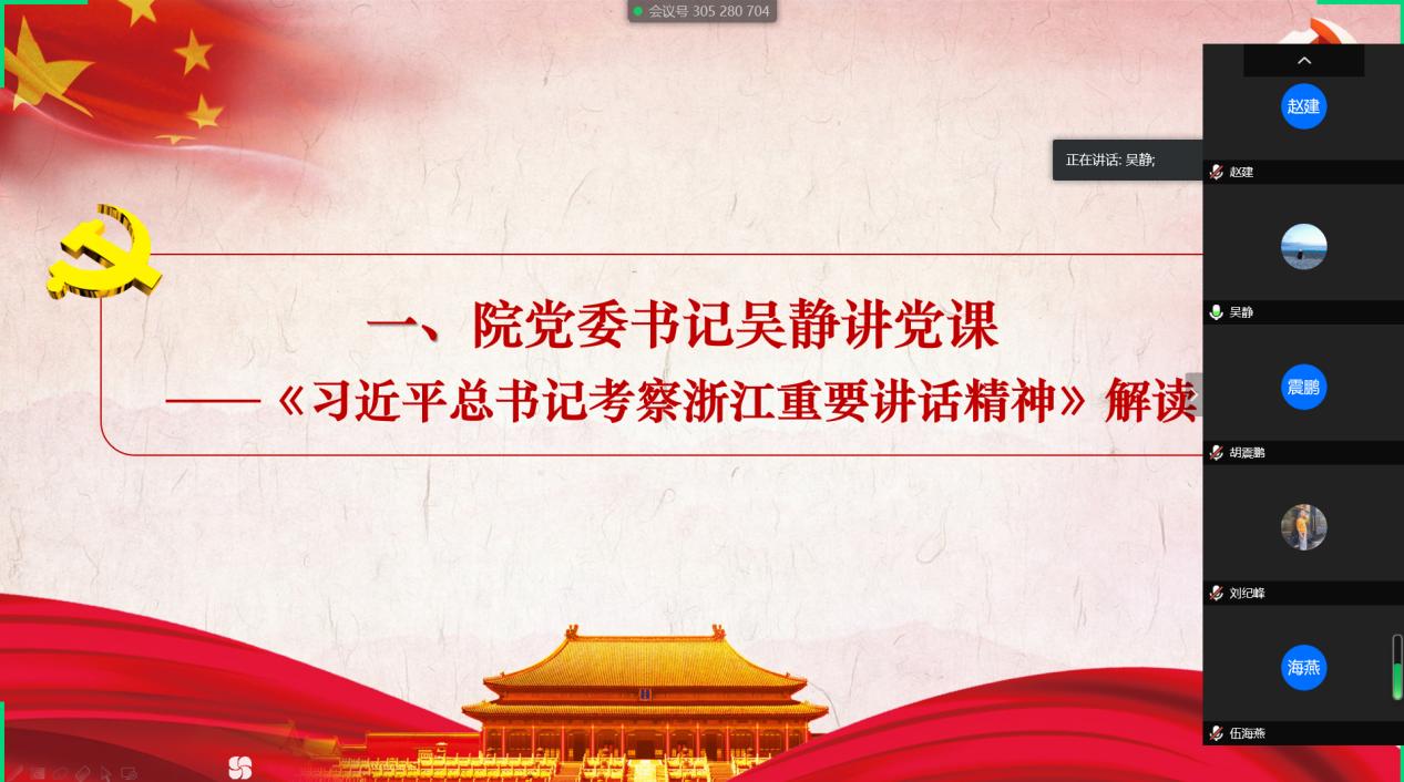 2020年4月10日上午,球探体育 教工第五党支部在腾讯会议上开展了习近平总书记考察浙江重要讲话精神学习会。本次会议由党支部书记魏一主持,支部全体成员参加。