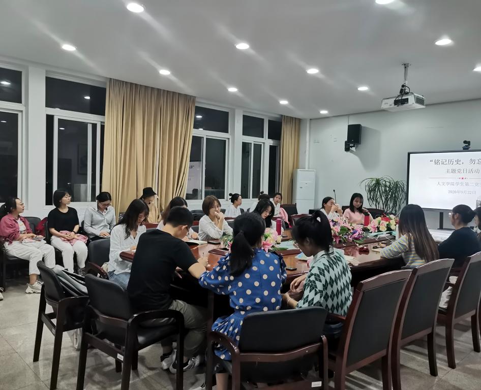 2020年9月22日晚,球探体育 学生第二党支部全体党员在人文楼213会议室举行了本学期首次主题党日活动。本次会议由支部书记陈赛君主持,全体党员参加。