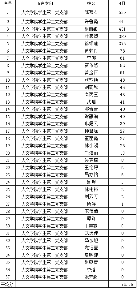 在4月份的学习中,总体上各个支部的学习情况呈现上升态势,自活动开展以来,已经慢慢培养起了良好的学习氛围。球探体育 学生第四党支部以1303.89分(按平均分)成为月度优秀学习支部。