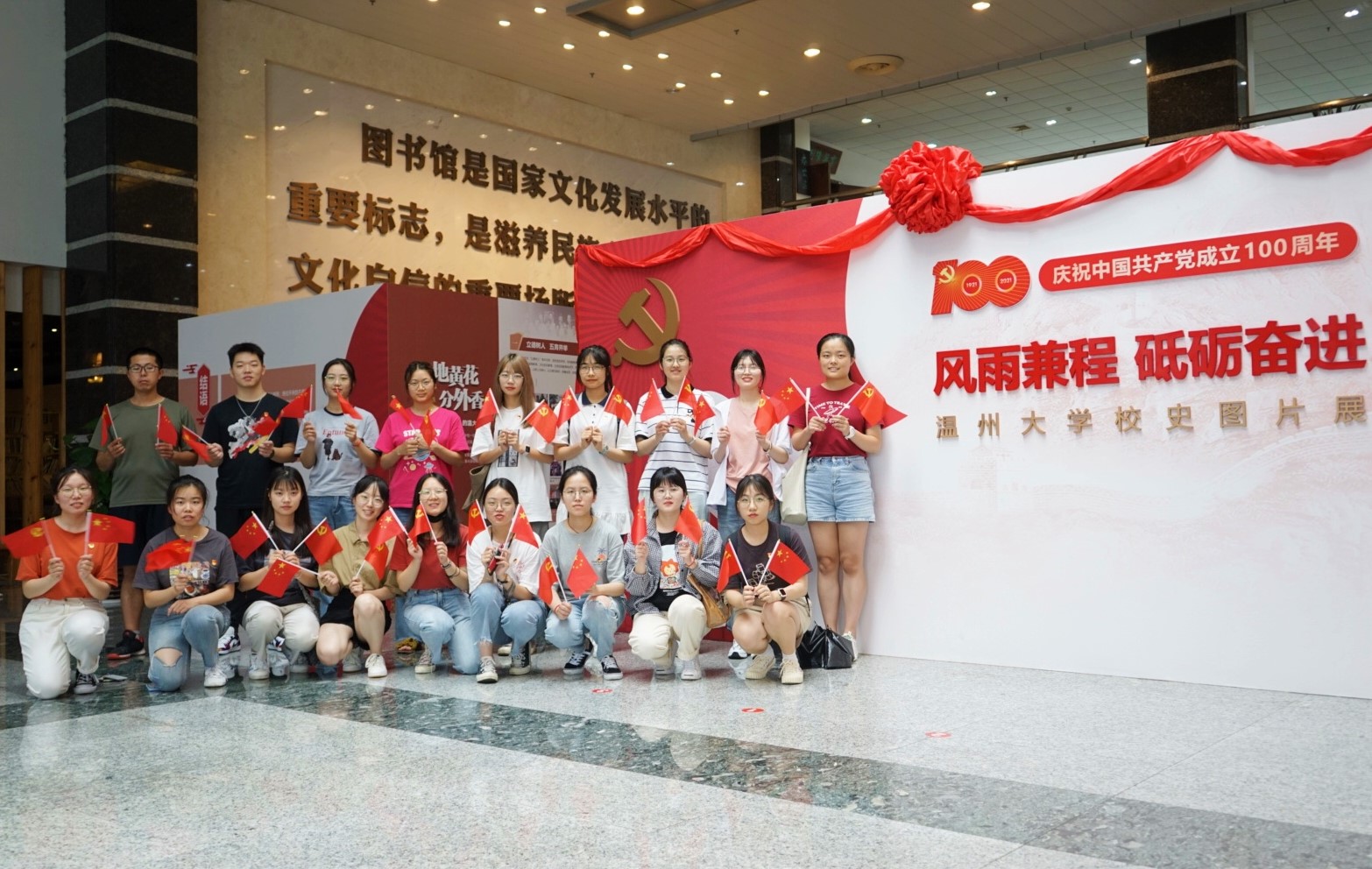 首先,支部同志集体参观位于育英图书馆一楼大厅的“献礼建党百年,传承红色精神”图片展以及“风雨兼程 砥砺奋进”温州大学校史图片展。同志们通过参观、浏览图片展的方式,充分了解了温州大学的发展历史以及革命先辈浴血奋斗的峥嵘岁月,从历史中感悟红色精神,汲取奋进力量。观展结束后,同志们集体合影留念。