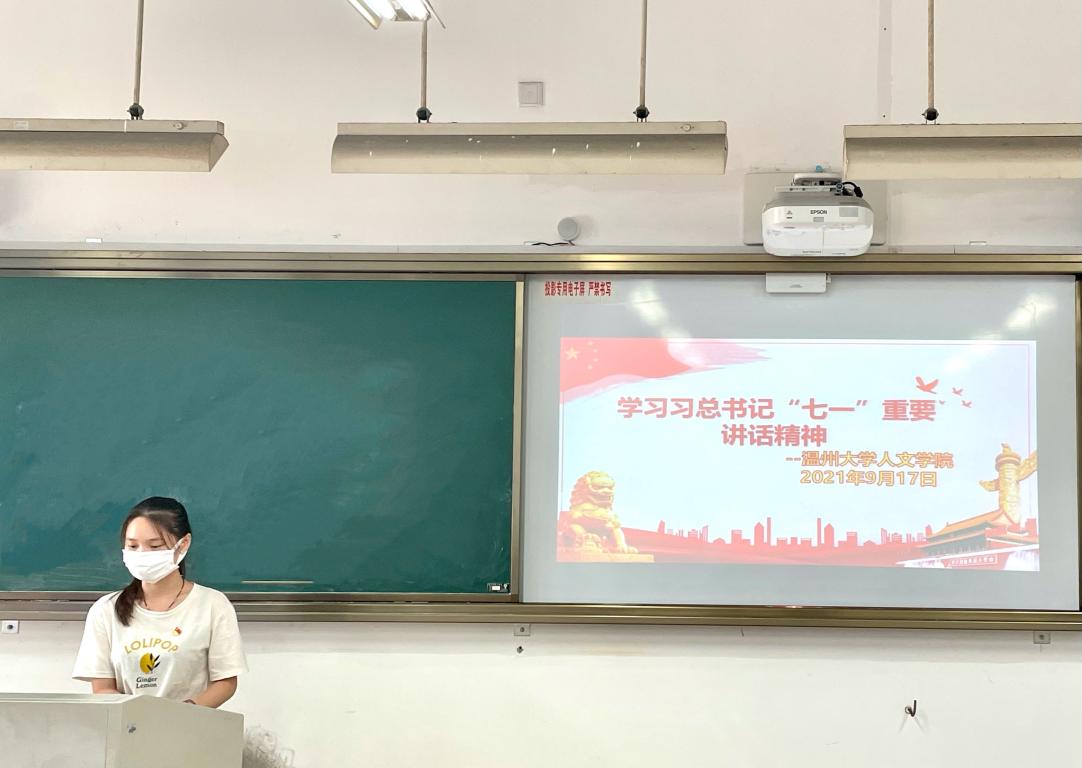 2021年9月11日,温州大学球探体育 第二、第七学生党支部,在北校区人文楼206教室,开展习近平总书记“七一”重要讲话精神学习会。