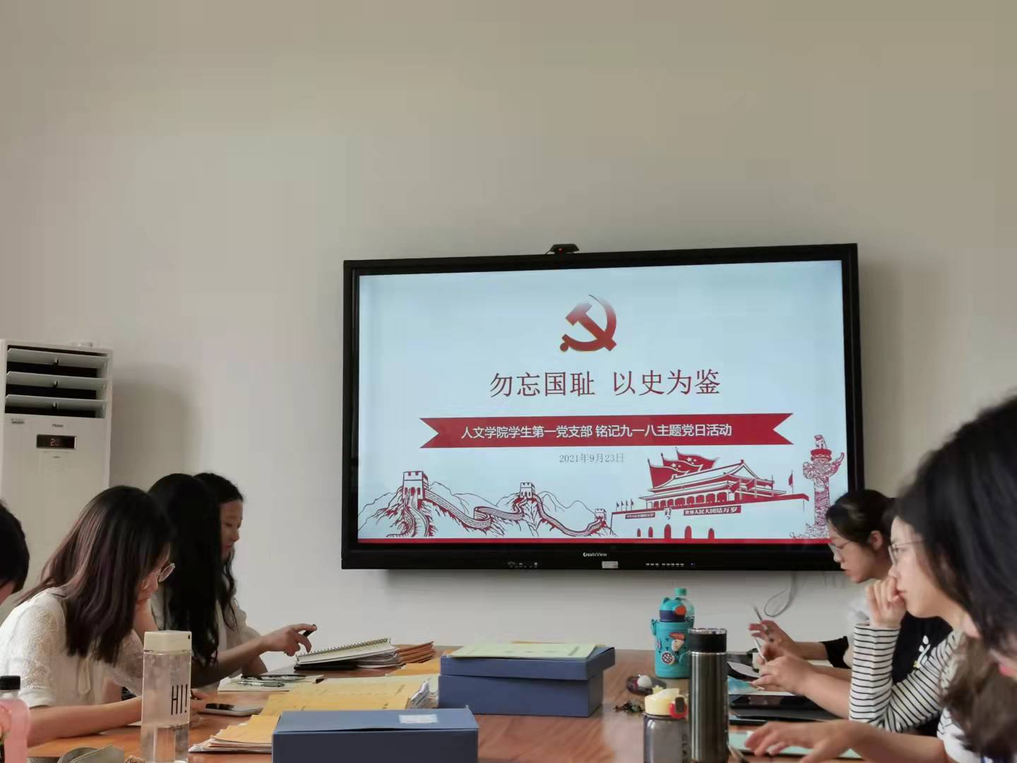 党日活动以铭记“九一八”为主题,在主持人简要而庄重的引入介绍后,支部各同志的思绪逐渐回到了那个家国危难、人民困苦的时代,同志们的心情也自发地沉重了起来。在这庄重的场合里,同志们集体学习了历史纪录片《勿忘九一八》,通过纪录片详实而可靠的史料展示,同志们更加深入地理解了这段中华民族的苦难史,心里对于共产党人实现“为中国人民谋幸福,为中华民族谋复兴”的信念更加感同身受。随后,同志们结合纪录片的内容进行了交流,支部各同志们分享了自己的的体会与感想,气氛十分热烈。