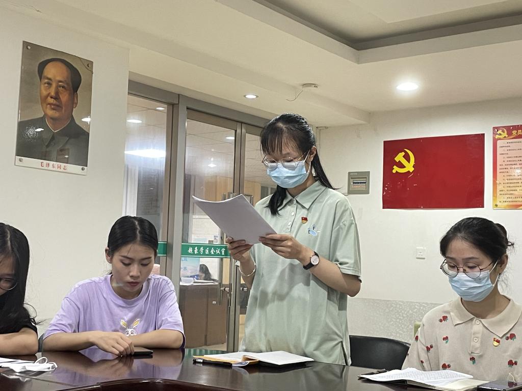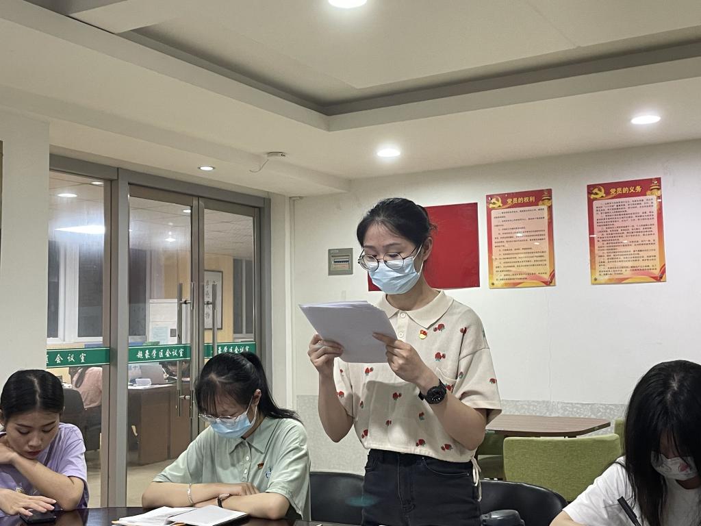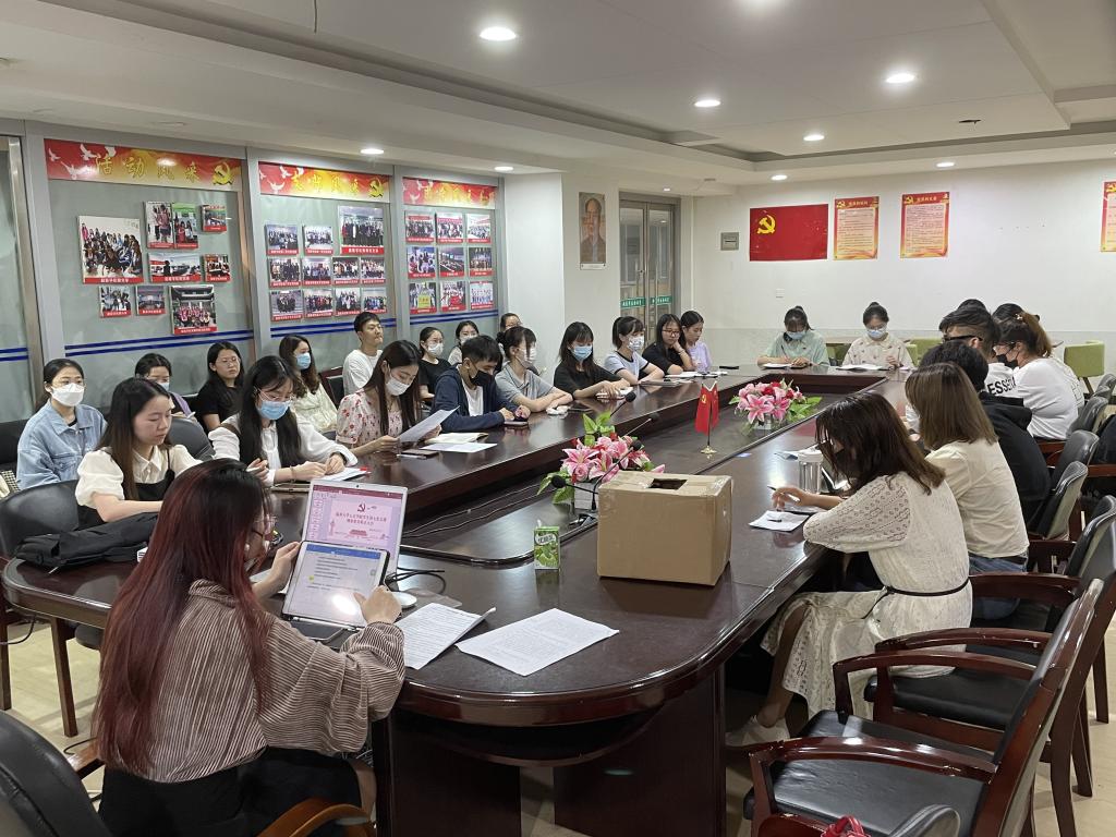 2022年6月1日晚,温州大学球探体育 学生第七党支部于超豪学区学生之家召开讨论关于刘雅晨、刘冰冰同志转正问题的支部大会。支部15名正式党员、6名预备党员以及12名入党积极分子出席本次会议。会议由党支部书记潘铁颖同志主持并严格按照预备党员转正程序进行。