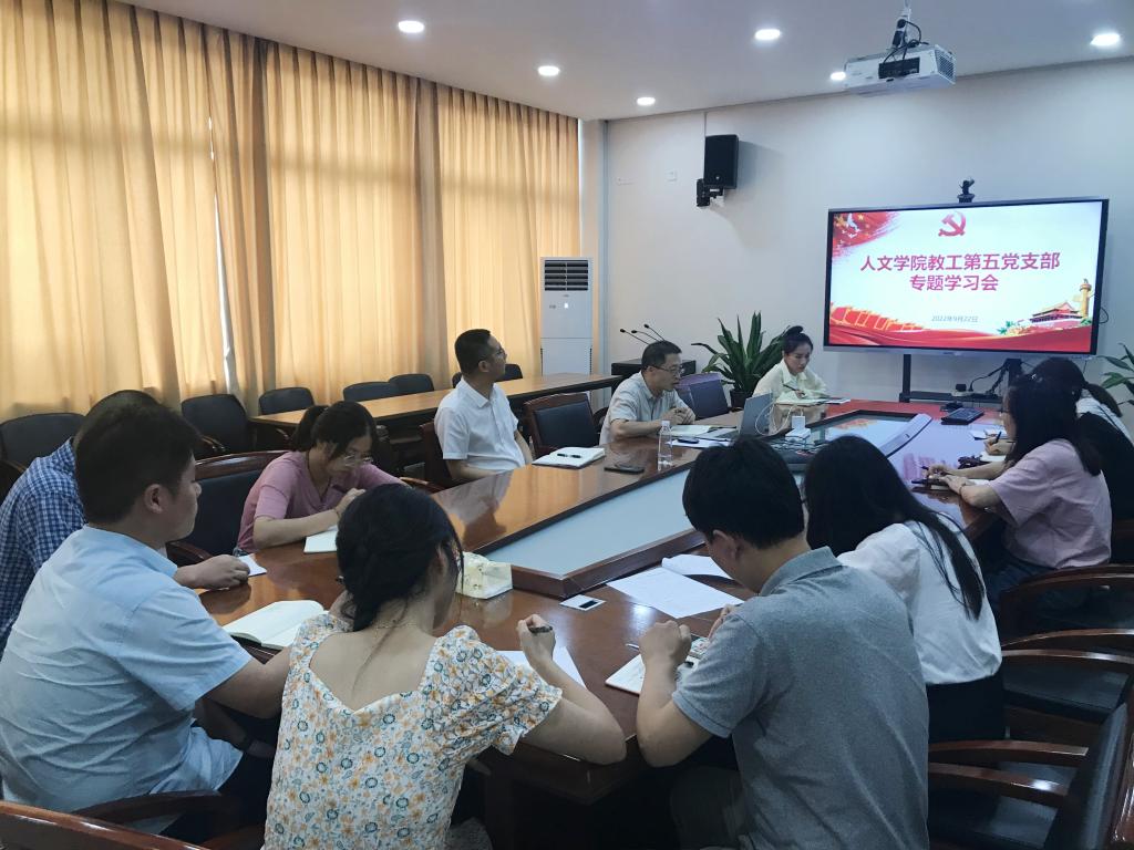 为了加强支部理论学习与交流,提升党员同志主动学习和担当的意识和能力,2022年9月22日下午,球探体育 教工第五党支部新学期专题学习会在学院213会议室开展,会议由支部书记魏一主持,支部全体党员同志参加。