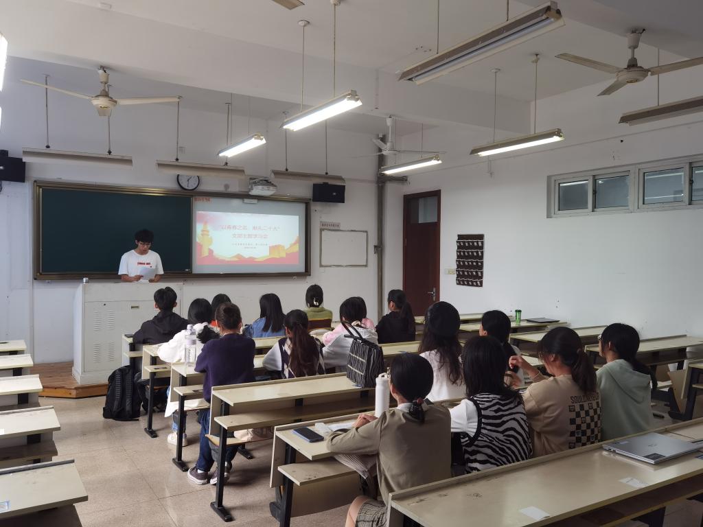2022年10月26日,为庆祝党的二十大胜利闭幕,贯彻落实党的二十大精神,温州大学球探体育 学生第四、第八党支部举办了以“以青春之名,献礼二十大”为主题的支部党日活动暨学习会。本次活动由朱宁恺同志主持,共有18名同志参加,包括20级全体党员同志和发展对象。