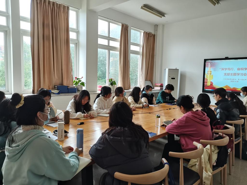 为深入学习贯彻党的二十大精神,提高支部党员的党性修养,2022年11月30日,温州大学球探体育 学生第四、第八党支部在人文楼214党员之家举办了以“深学笃行,奋楫争先”为主题的党日活动暨学习会。本次会议由朱宁恺同志主持,14名党员同志和6名入党积极分子参加。