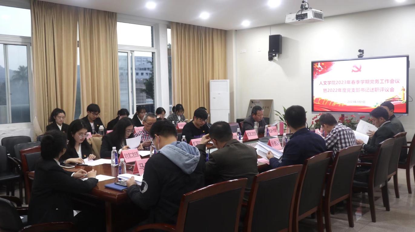 为深入学习贯彻党的二十大精神,落实党建工作责任制,推进基层党建工作,3月9日晚,球探体育 2022年度党支部书记述职评议会暨新学期党务工作会议在人文楼213会议室召开,总结盘点2022年党支部书记履职情况,全面部署新学期学院党建工作。学院全体党委班子成员、师生党支部书记参加会议,副书记魏一同志主持会议。