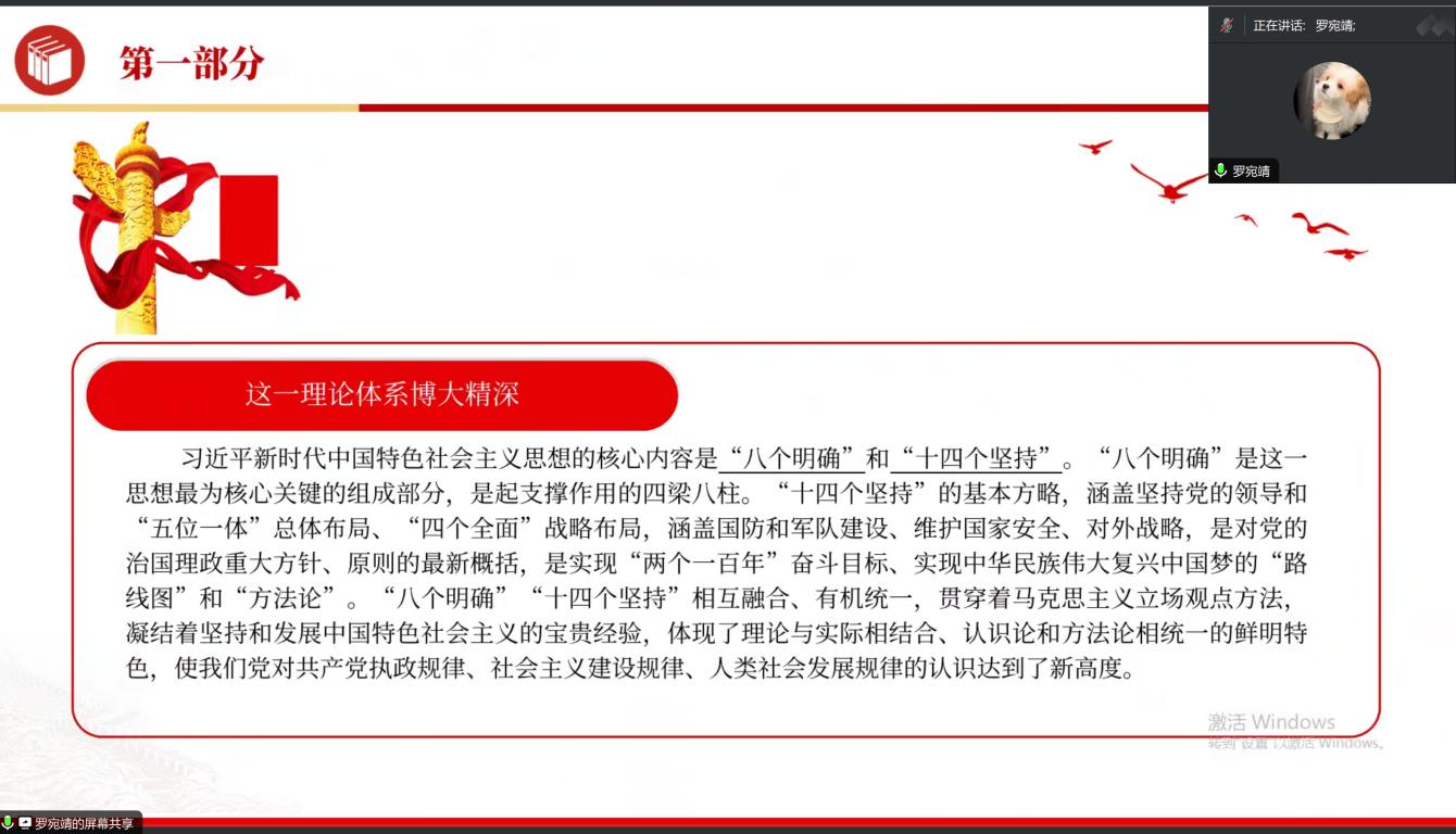 为深入学习贯彻习近平总书记考察浙江重要讲话精神,结合主题教育要求,提升党员党性修养,进一步提高党组织的凝聚力、战斗力、号召力和创造力,11月22日晚上19:30,温州大学球探体育 学生第一党支部于线上开展了“理论武装强党性,学思践悟铸忠诚”主题党日活动。本次活动由罗宛靖同志主持,共有27名同志参加。