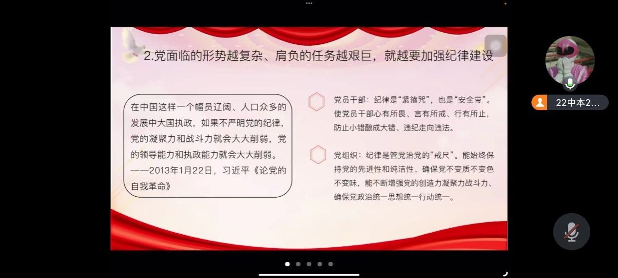 心得分享环节,董书娴、蔡思淇、施雨涵三位同志分享了自己的学习心得,她们结合个人经历,具体阐述了自己对党纪建设的独特理解,并表明了自己将在今后的学习、工作与生活中认真贯彻党风党纪的决心。